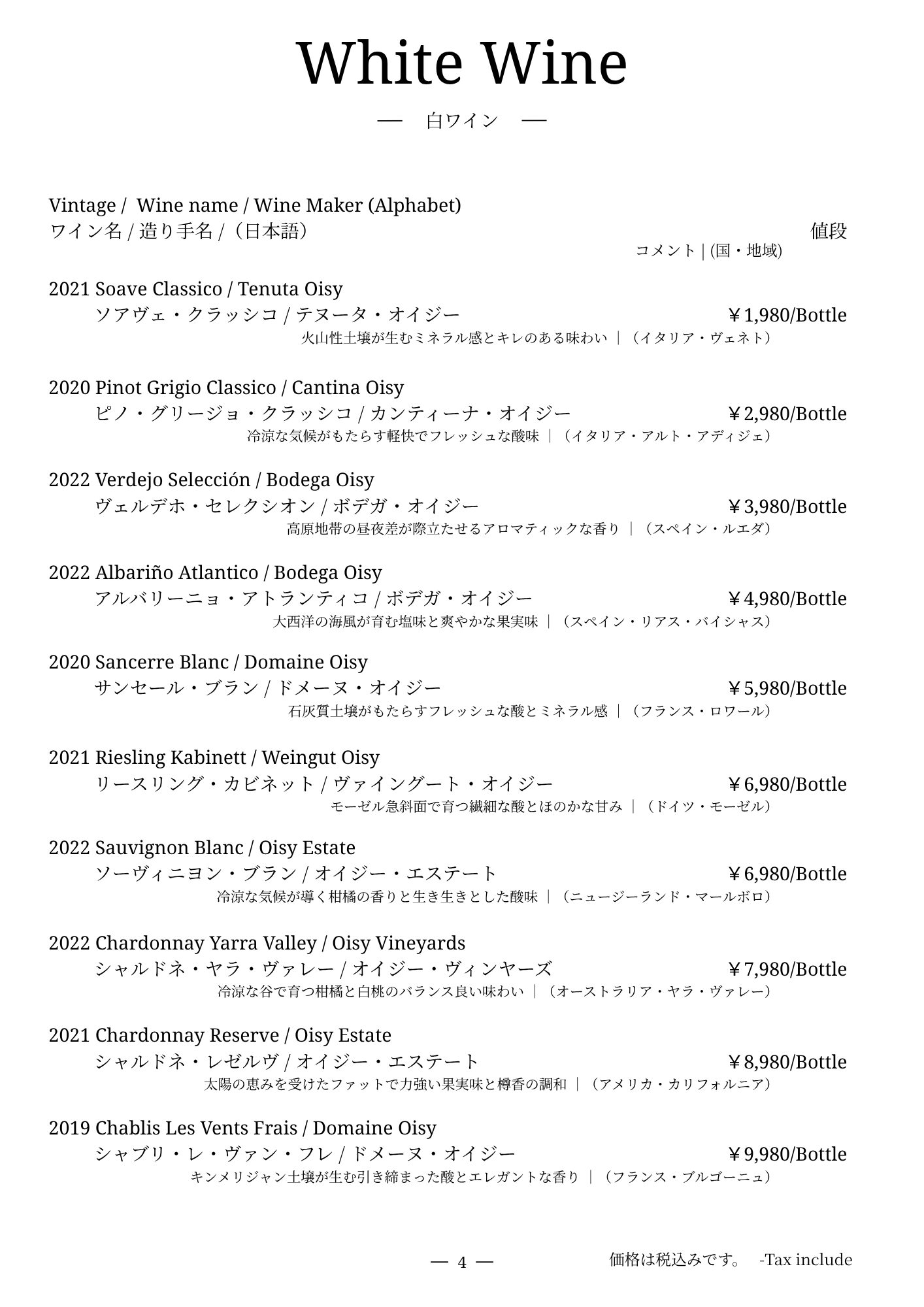 より多くの方が使いやすいように、「基本のワインリスト」にはロゴなどは一切入っておりません。
