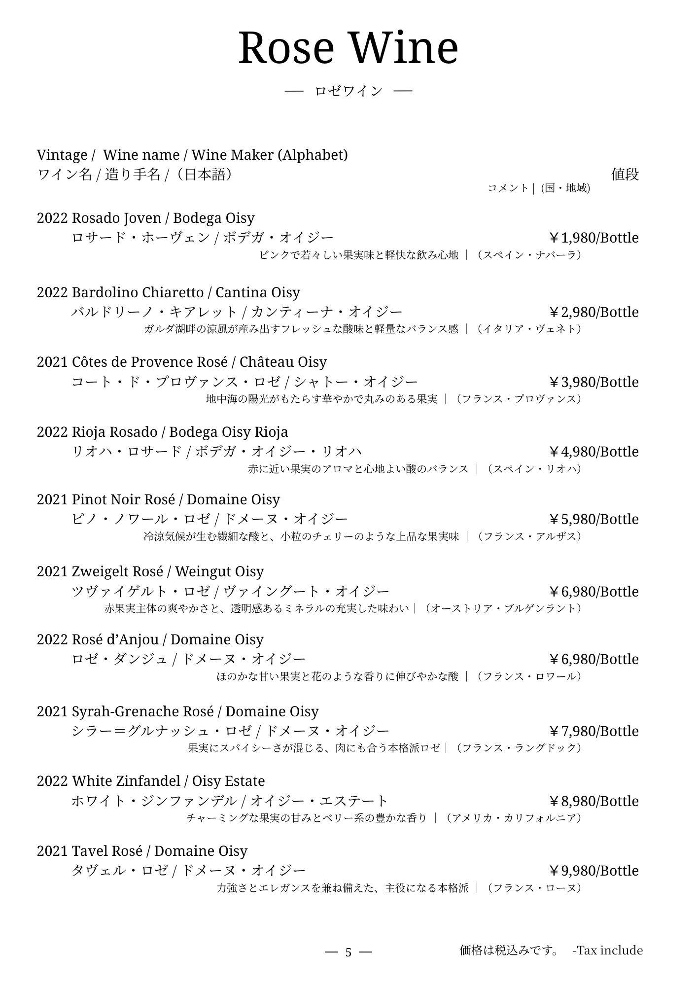 ロゼワインや、食後酒、甘口ワインはまだまだ定番とは言えません。