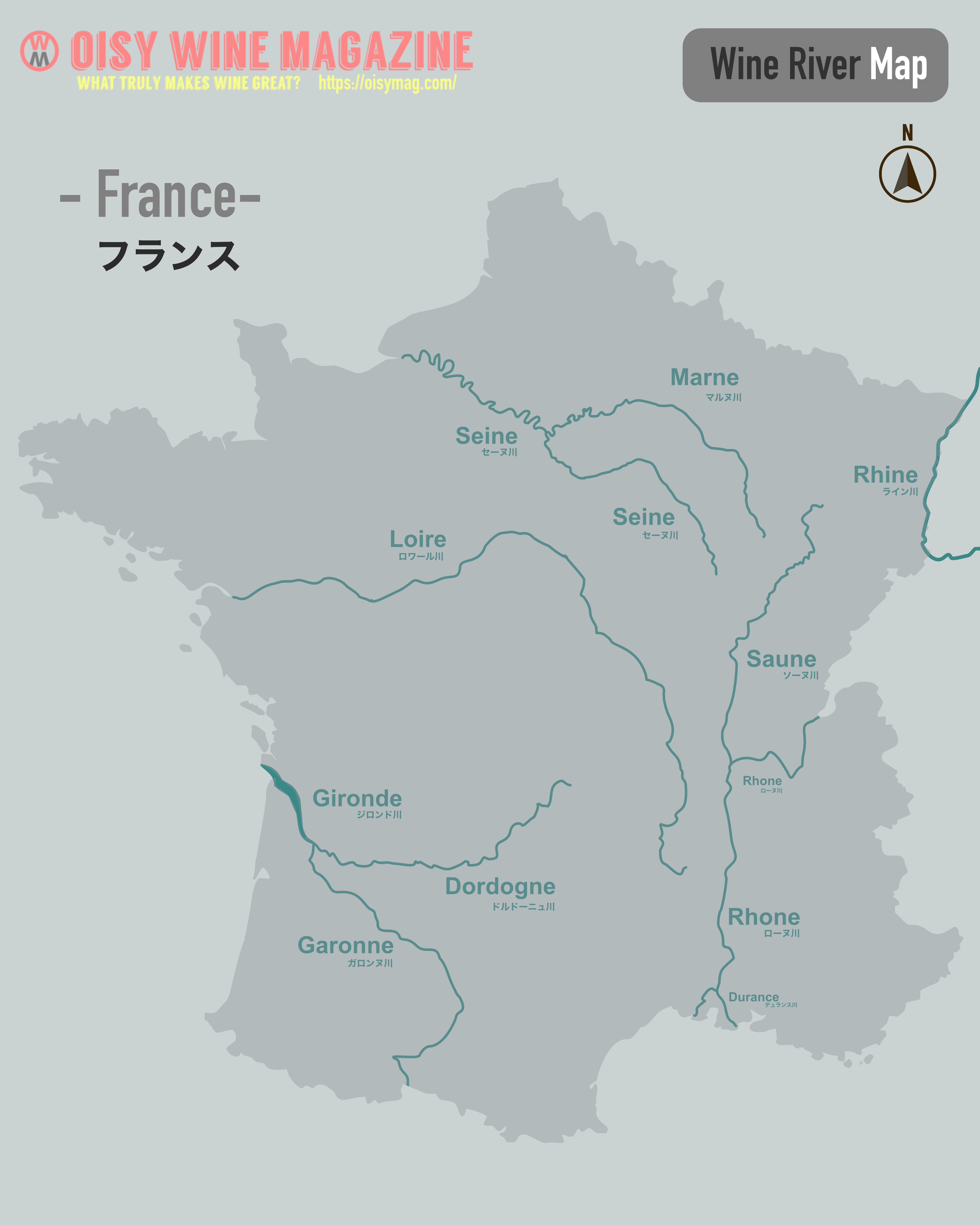 “フランスワイン河川地図” をダウンロード FranceRiverMap.png – 1323 回のダウンロード – 804.07 KBProバージョン(背景透過、ロゴなしで商用利用可能な有料版)