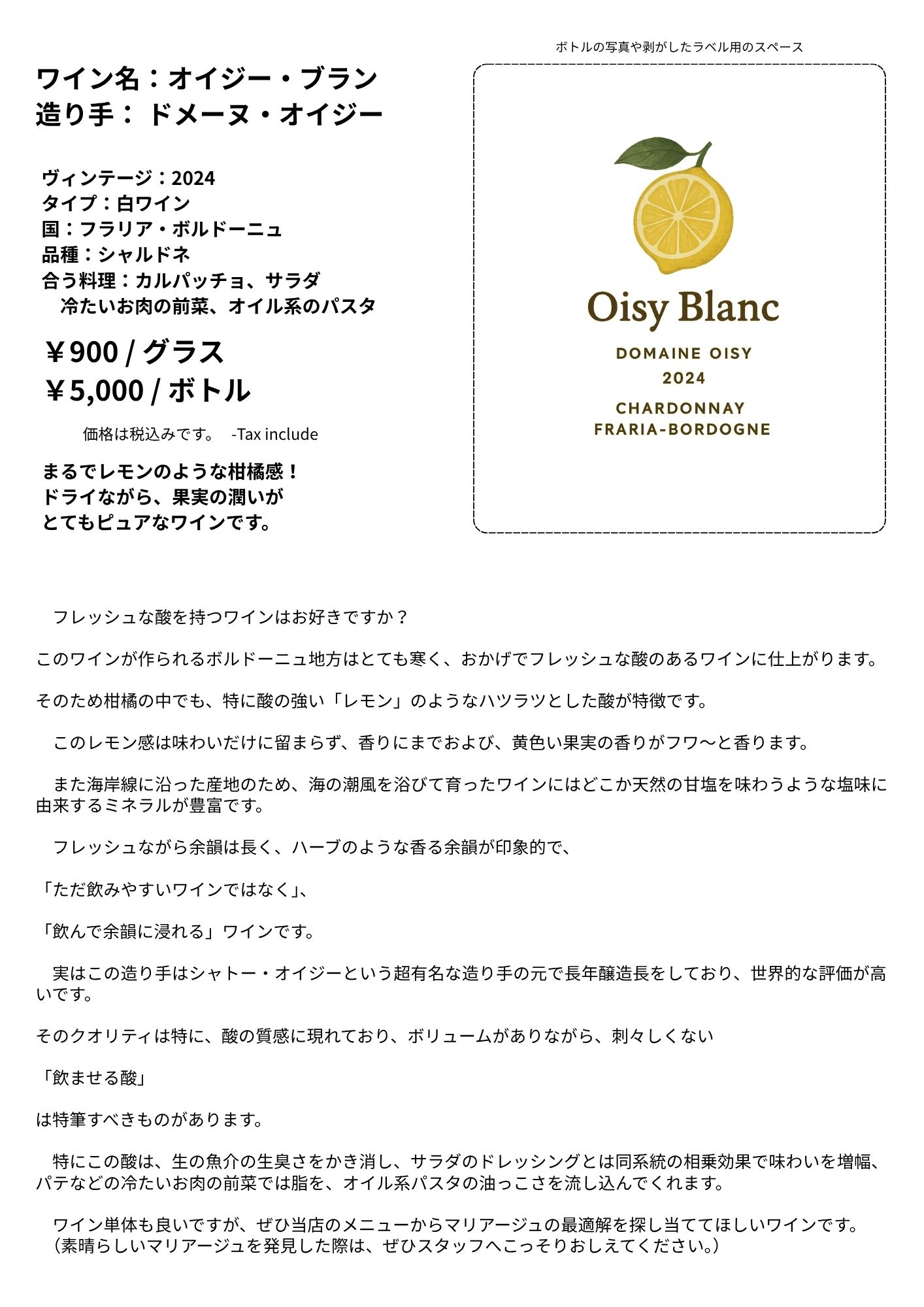 とはいえオイジーはワイン屋ですので、日々忙しく頑張る飲食店さんのためにできることは限られています。