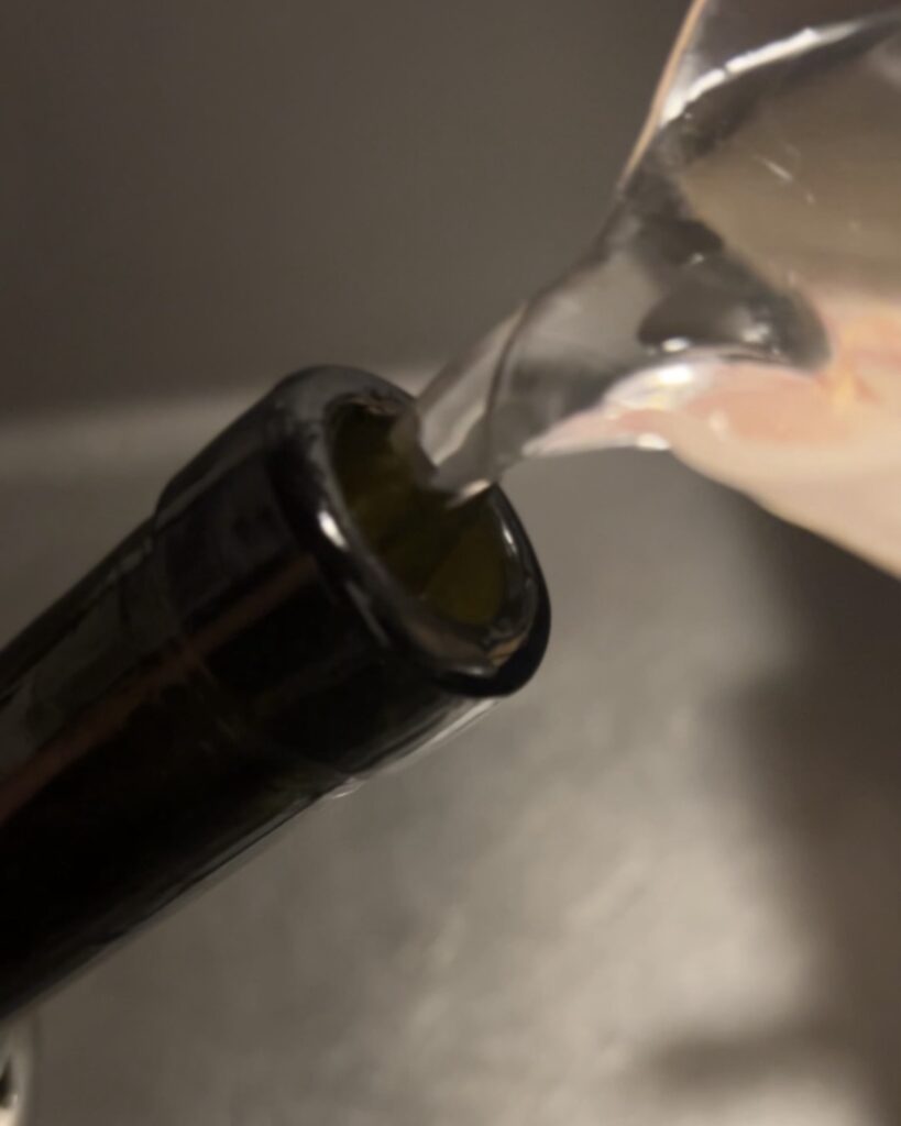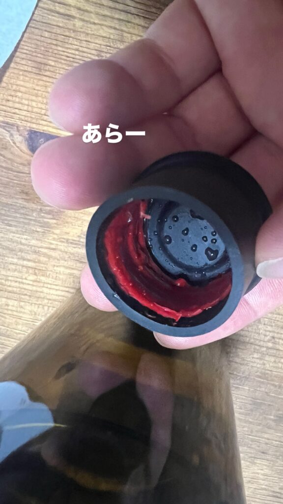 このやり方はボトルが熱くなりますので、蝋キャップの蝋が残っていると溶けてしまいます。