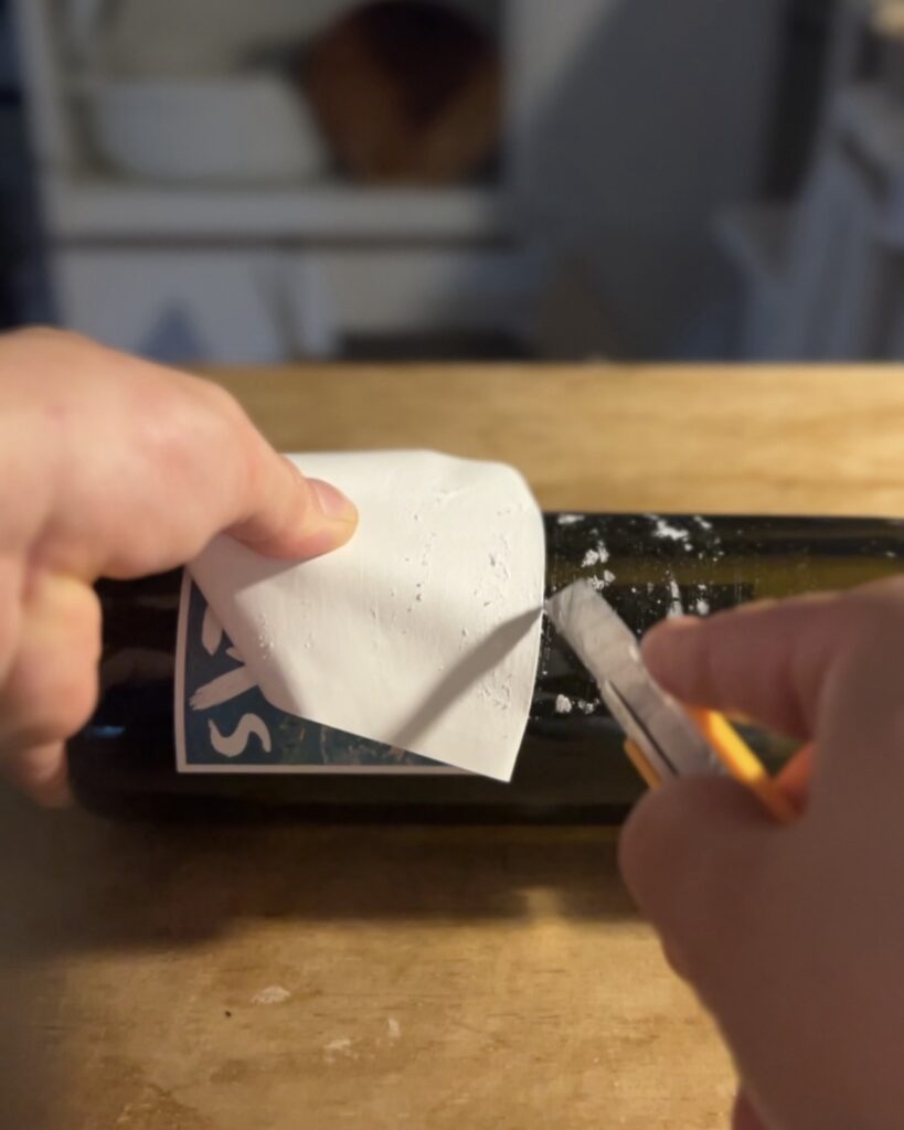 ワインのラベルを剥がし、